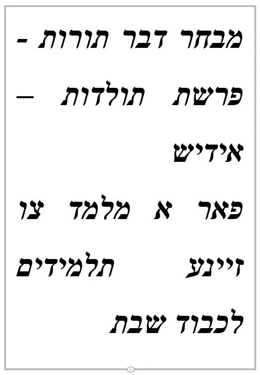מבחר דבר תורות – פרשת תולדות – אידיש פאר א מלמד צו זיינע תלמידים לכבוד שבת