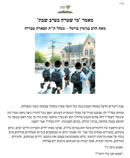 'מי שטרח בערב שבת' – מאמר למנהלים
