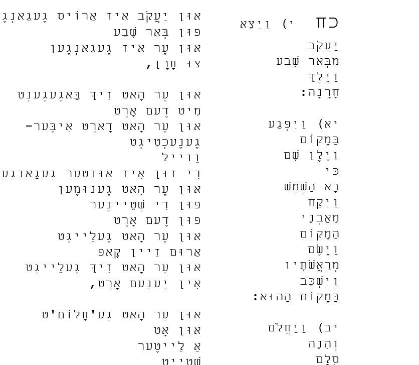 מקבץ דפי טייטש – ויצא – גם באידיש