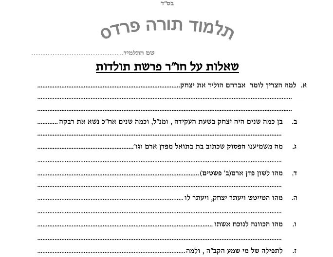 סה שאלות על חומש ורש"י פרשת תולדות