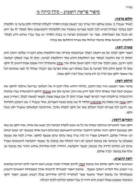 סיפור הפרשה – כיתה ב' – מקץ