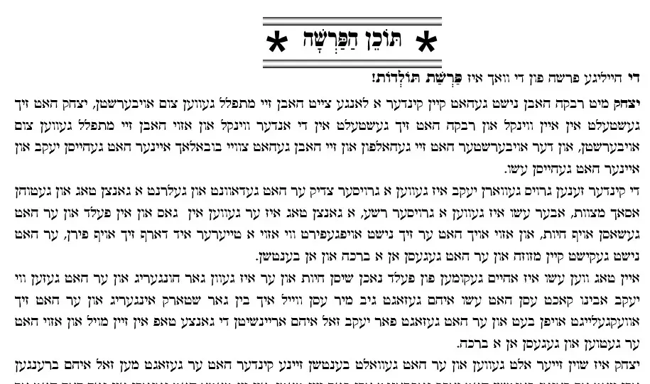 סיפור הפרשה – תולדות – באידיש – כיתה גן