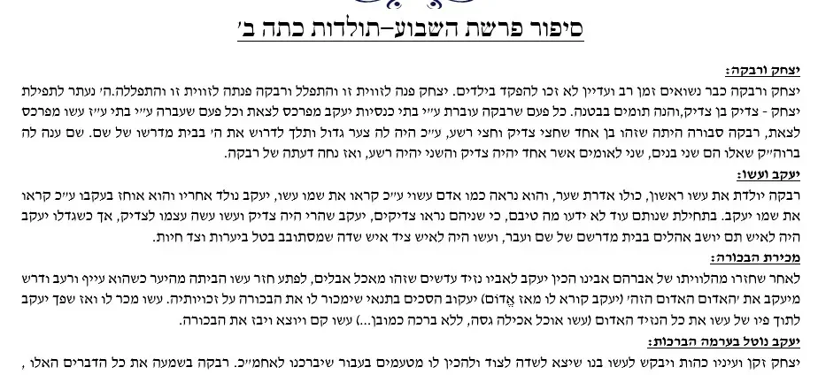 סיפור הפרשה – תולדות – כיתה ב