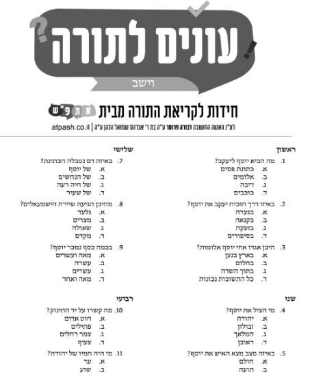 עונים לתורה לפרשת וישב