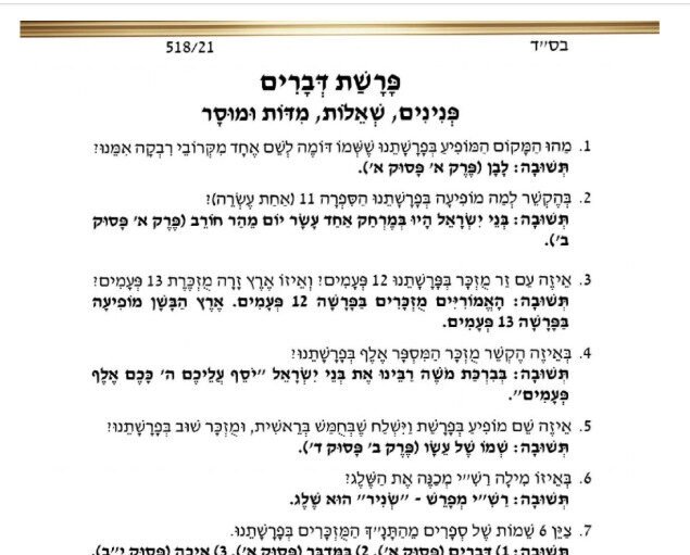 פנינים וחידודים לפרשת דברים עם תשובות – פרחי הדגל