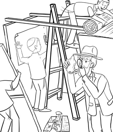 ציור לצביעה בניית סוכה (יוסי פרנק)