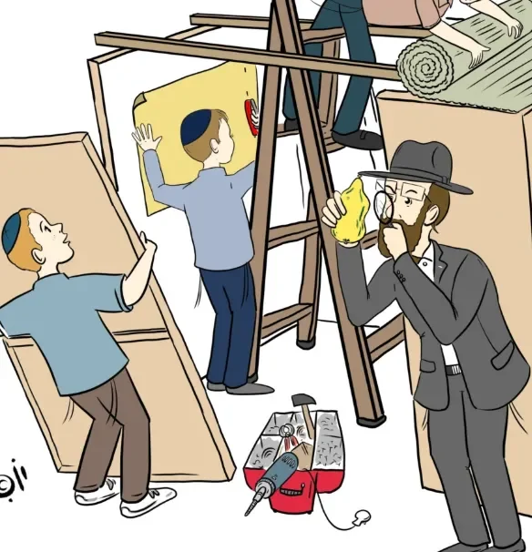 ציור צבעוני בניית סוכה (יוסי פרנק)