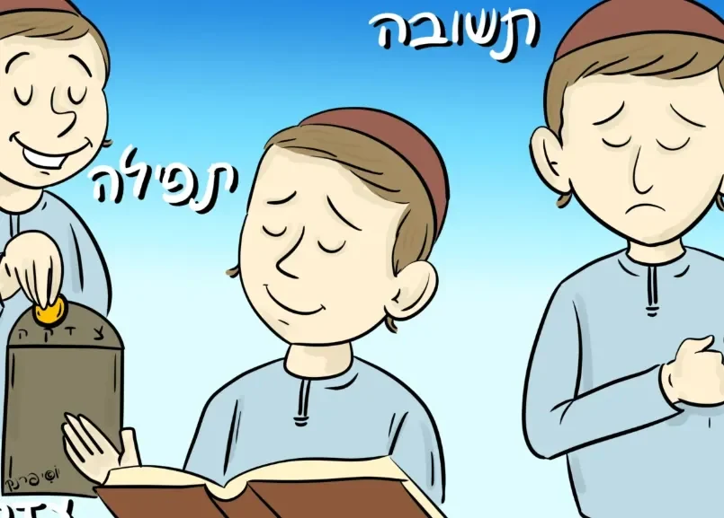 ציור צבעוני – תשובה ותפילה וצדקה (יוסי פרנק)