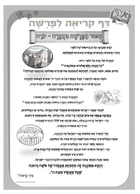דף קריאה – סיפור הפרשה בקצרה לפרשת קרח
