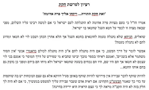 רעיון לפרשת שבוע – פרשת חקת