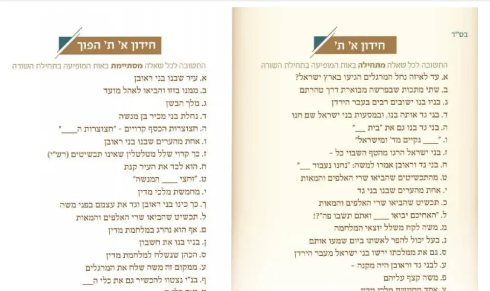 שאלות א' ב' טמונה בפרשה לפרשת מטות מסעי