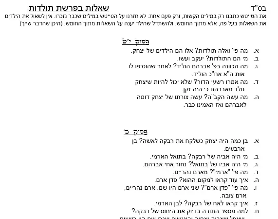 שאלות בהבנת הנקרא – תולדות – לשאול את התלמיד בשעת הלימוד