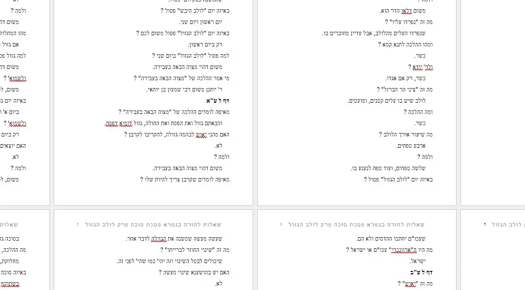 שאלות וחלק תשובות לחזרה – מסכת סוכה גמרא – על כל פרק לולב הגזול