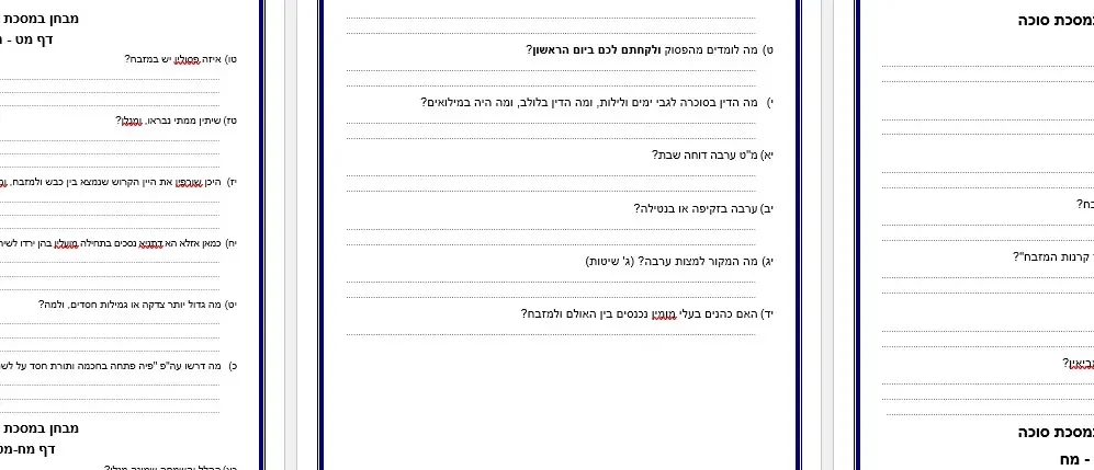 שאלות לחזרה – מסכת סוכה גמרא – על כל פרק לולב וערבה – מת"ת דרכי אבות צאנז