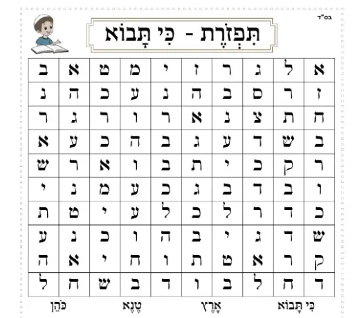 תשבצים לגיל הרך לפרשת כי תבא
