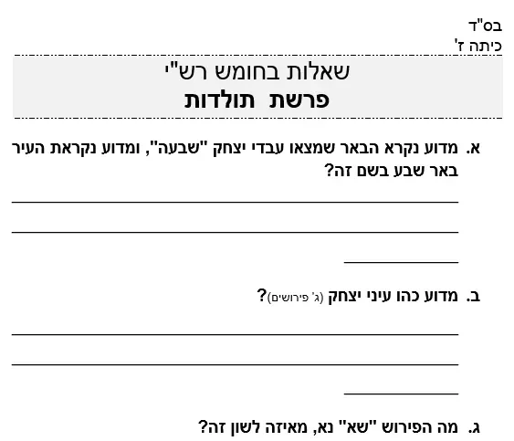 03 – שאלות בחומש רשי – פרשת תולדות – כיתה ז