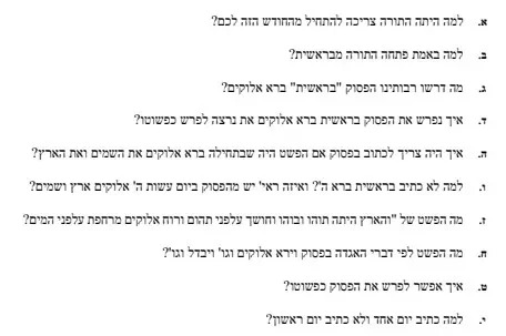 17 שאלות על יום ראשון ושני