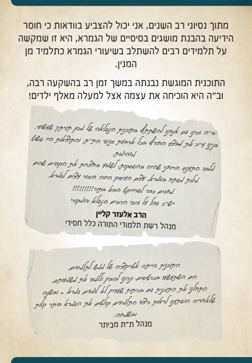 לצורך כך נבנתה תוכנית מיוחדת לחיבור התלמידים לשפת הגמרא ומהלכי הגמרא.