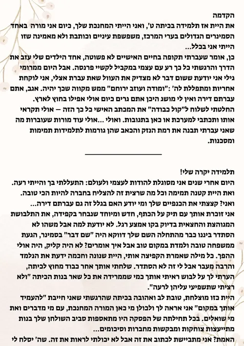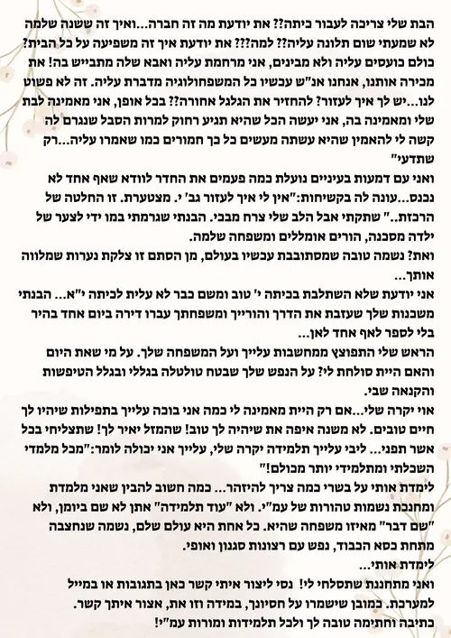 המכתב פורסם במערכת 'כל כבודה', דרכה ניסתה המורה לאתר את אותה התלמידה (שבינתיים משפחתה עברה דירה) ולהעביר מסר נוקב לכל נשות החינוך…